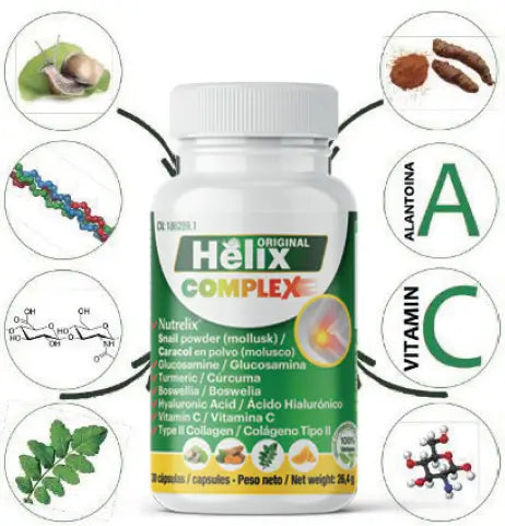 HÉLIX COMPLEX, le nutriment naturel révolutionnaire pour les articulations à base de Nutrelix®, extrait de protéines d’escargot avec de l’allantoïne.
